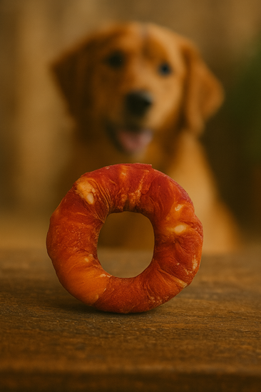 De buffelhuid donut met eend is niet alleen lekker, maar draagt ook bij aan de tandhygiëne van je hond door het natuurlijke schraapeffect tijdens het kauwen.