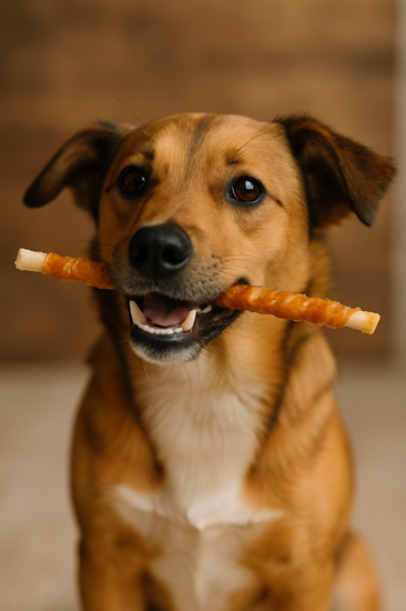 - Laat je hond altijd onder toezicht bij het geven van kauwsnacks.
