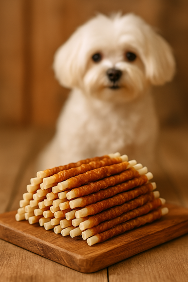 Kip met runderhuidsticks