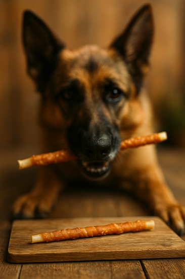 De gedroogde kip met runderhuidsticks zijn niet alleen lekker, maar dragen ook bij aan de tandhygiëne van je hond door het natuurlijke schraapeffect tijdens het kauwen.