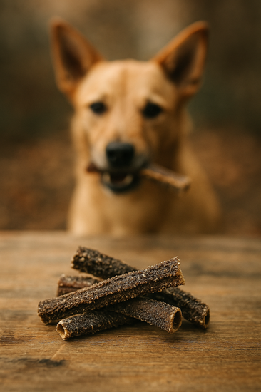 - Laat je hond altijd onder toezicht bij het geven van kauwsnacks.