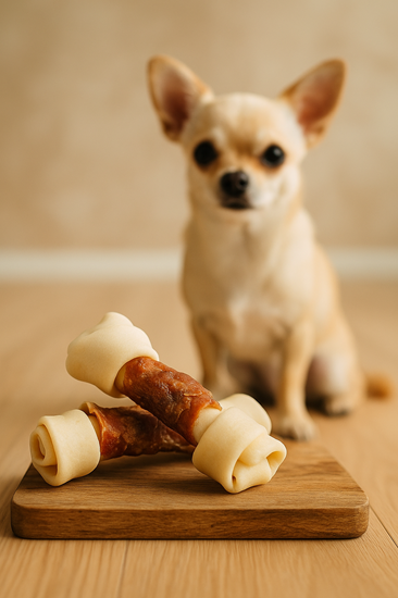 - Laat je hond altijd onder toezicht bij het geven van kauwsnacks.